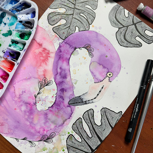 March 24 | Untangle with Watercolour | Paint n Sip | Doodling | Flamingo