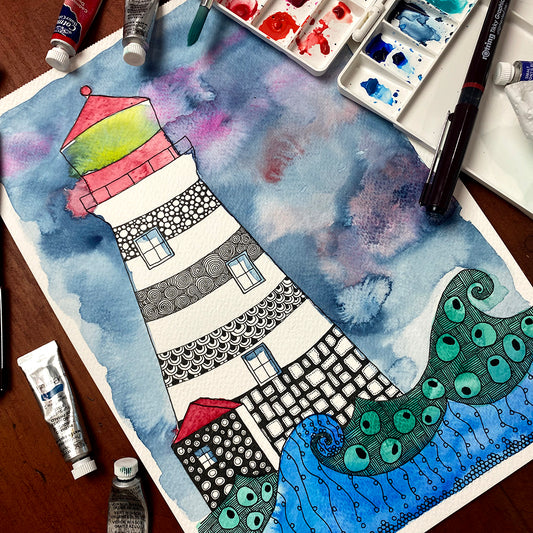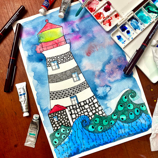 July '24 | Untangle with Watercolour | Paint n Sip | Doodling | Lighthouse