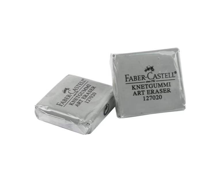 The Faber Castell Kneadable Eraser is soft and pliable form of eraser which is commonly used in sketching and drawing. It is self cleaning and as long as you don't loose it, it will last you forever!