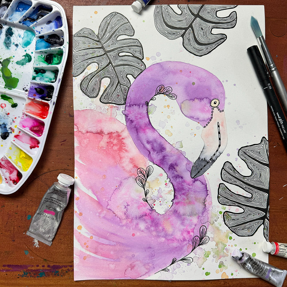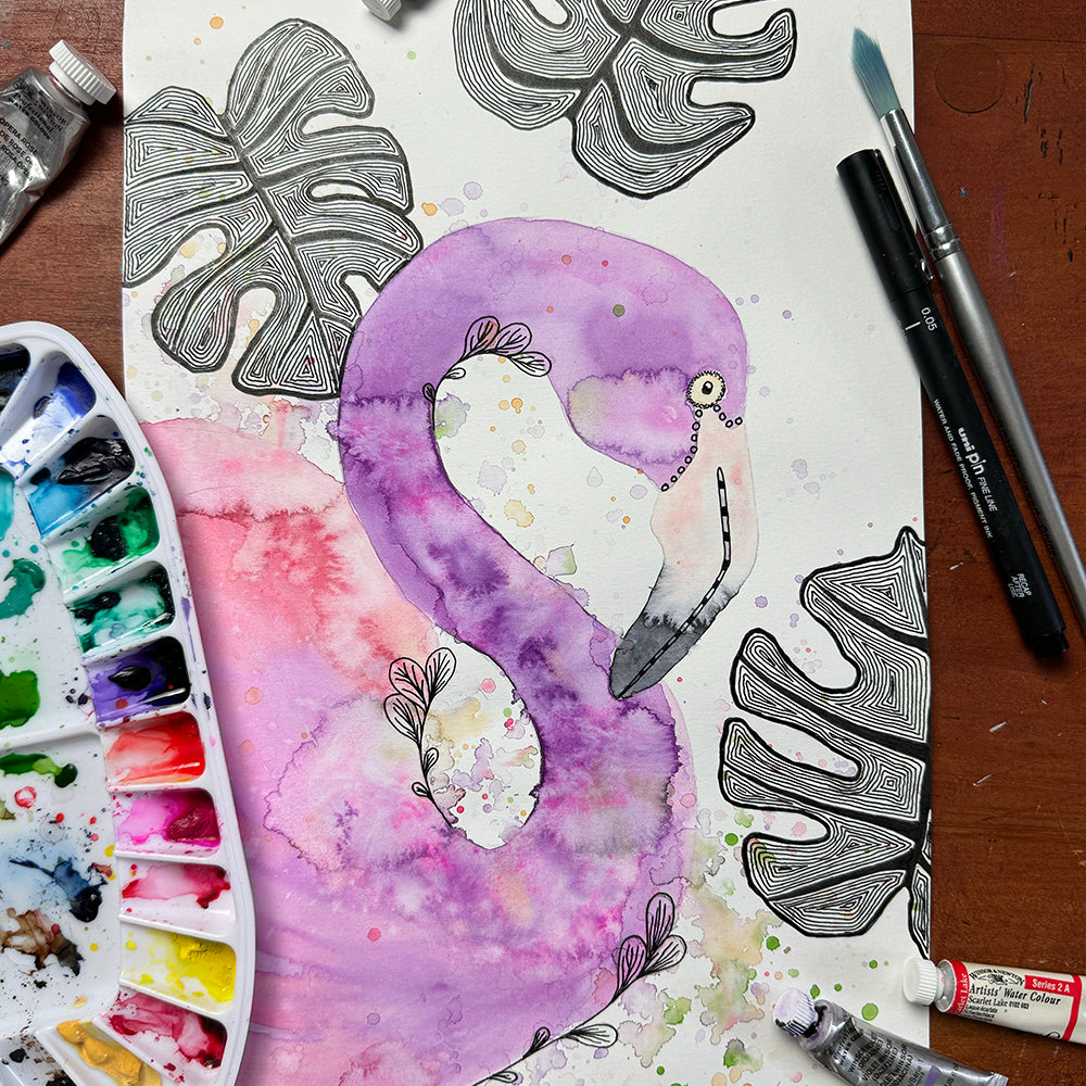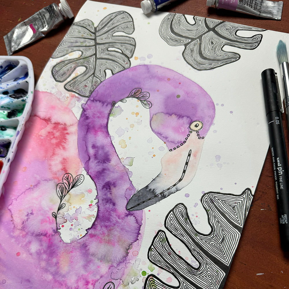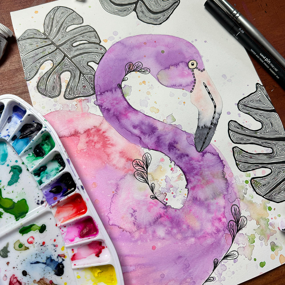 March 24 | Untangle with Watercolour | Paint n Sip | Doodling | Flamingo