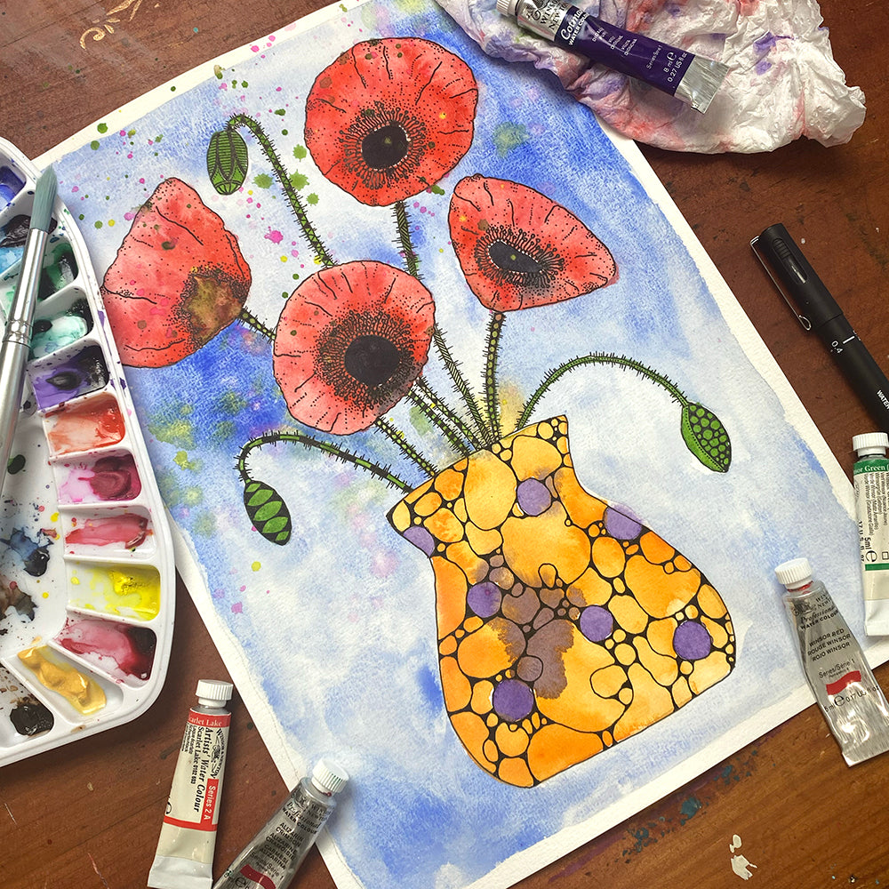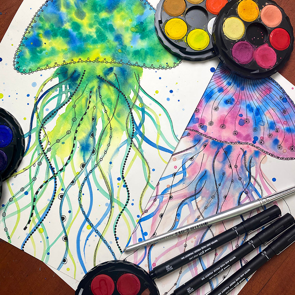 Make sure you have all the art supplies needed. Buying the Untangle with Watercolour Art Cart is the best way to do this as the paints and brushes will last you a long time and you only have to replace the waterproof pens and watercolour paper when they run out. And when you REALLY start getting into it you can build your art supplies up with more brushes and Winsor & Newton watercolour tubes, which are the best watercolours you can buy!